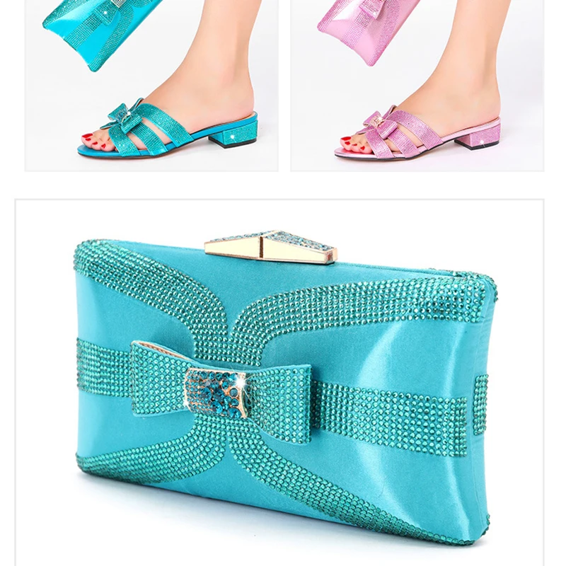 Cross-border Ladies with Heel Rhinestone Decoration Summer Fashion Shoes Bag Set Party with Dinner Bag