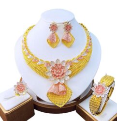 Fashion High Quality Necklace Earrings Bridal Wedding Engagement Anniversary Party Accessories Copper Gold Plated