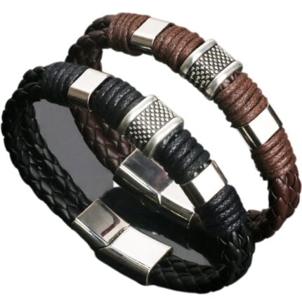 Products Description Product name G2753 Wholesale Pulsera De Cuero Para Hombre Double Braided Leather Magnetic Clasp Bracelet Jewelry Bangles &